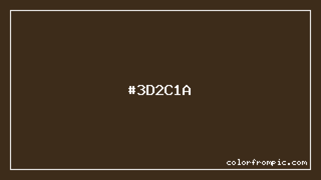 The hexadecimal color code #3D2C1A represents a very dark shade in the orange family. In the RGB color model, this color is composed of 61 red, 44 green, and 26 blue, which translates to approximately 24% red, 17% green, and 10% blue. This makes it a slightly desaturated color with warm undertones that can evoke different emotional responses depending on its application.