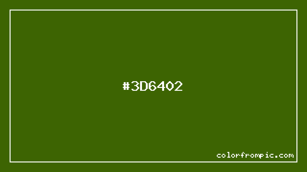The hexadecimal color code #3D6402 represents a very dark shade in the yellow family. In the RGB color model, this color is composed of 61 red, 100 green, and 2 blue, which translates to approximately 24% red, 39% green, and 1% blue. This makes it a highly saturated color with cool undertones that can evoke different emotional responses depending on its application.
