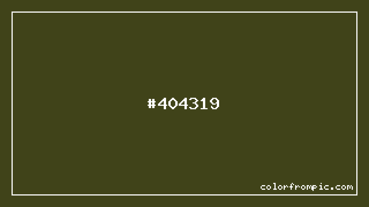 For print applications using the CMYK color model, #404319 would be reproduced using 4% cyan, 0% magenta, 63% yellow, and 74% black. The closest web-safe color is #333300, which may be useful for ensuring compatibility across older displays and systems.