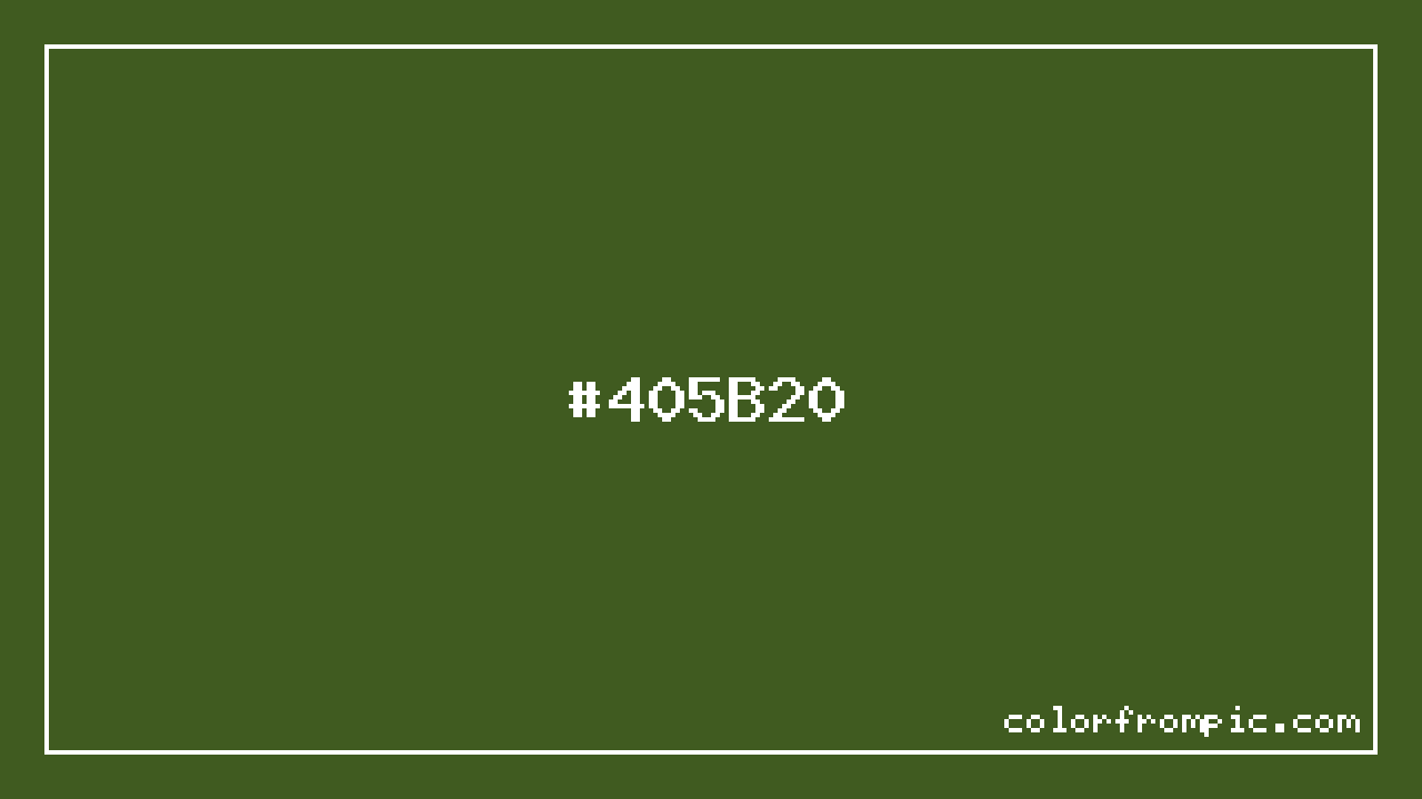 For print applications using the CMYK color model, #405B20 would be reproduced using 30% cyan, 0% magenta, 65% yellow, and 64% black. The closest web-safe color is #336633, which may be useful for ensuring compatibility across older displays and systems.