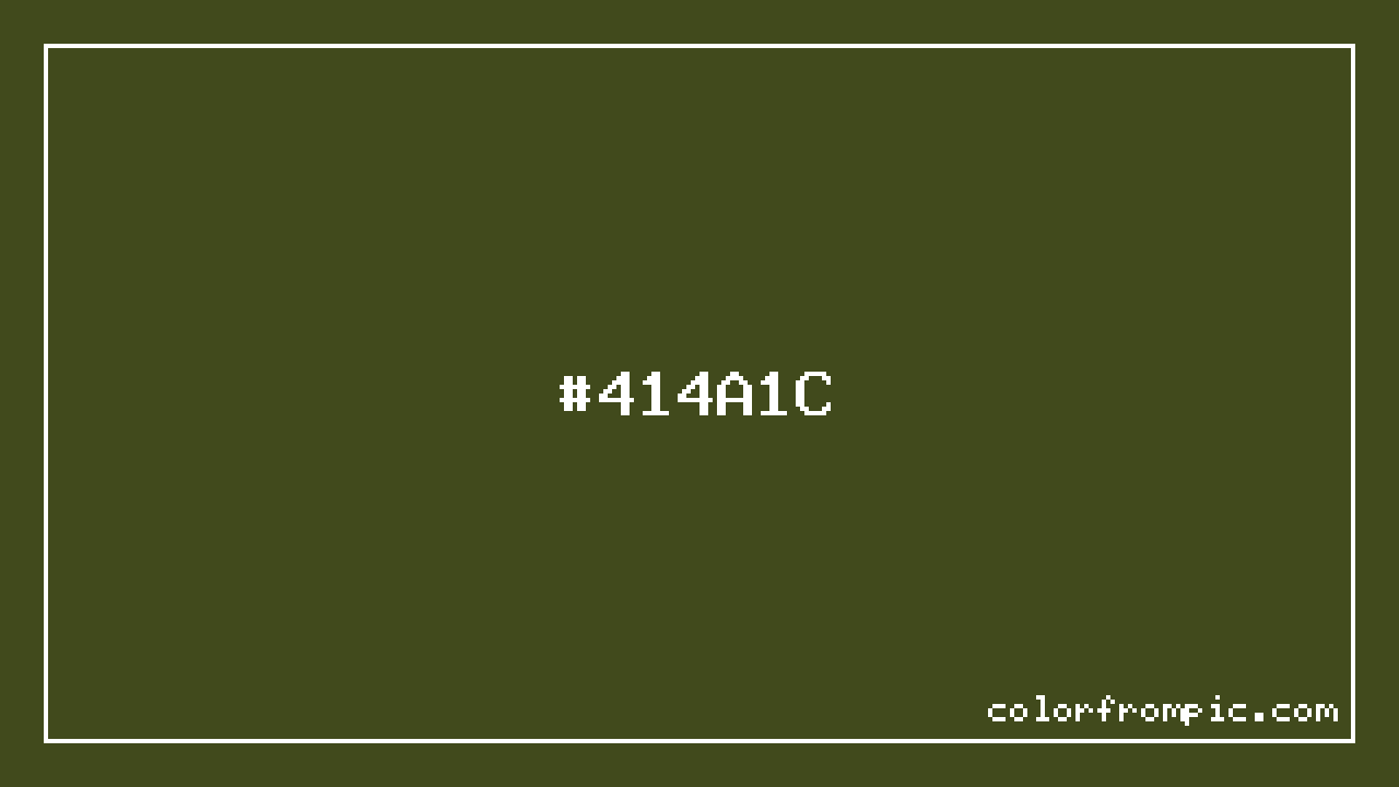 This color works well in various design contexts. As a darker shade, it works well for text, headers, and creating visual weight in compositions. The moderate to low saturation gives this color a sophisticated, muted quality that works well in professional and minimalist designs. When pairing #414A1C with other colors, consider its complementary color at hue 252° for maximum contrast, or use analogous colors within 30° of its hue for harmonious combinations. The decimal representation of this color is 4278812, which can be useful in certain programming contexts.