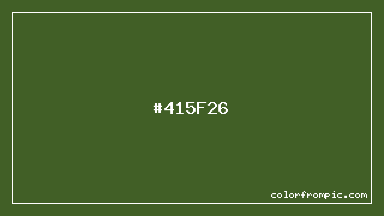 The hexadecimal color code #415F26 represents a dark shade in the green family. In the RGB color model, this color is composed of 65 red, 95 green, and 38 blue, which translates to approximately 25% red, 37% green, and 15% blue. This makes it a slightly desaturated color with cool undertones that can evoke different emotional responses depending on its application.
