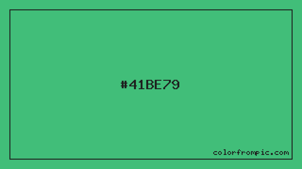The hexadecimal color code #41BE79 represents a medium shade in the green family. In the RGB color model, this color is composed of 65 red, 190 green, and 121 blue, which translates to approximately 25% red, 75% green, and 47% blue. This makes it a slightly desaturated color with cool undertones that can evoke different emotional responses depending on its application.