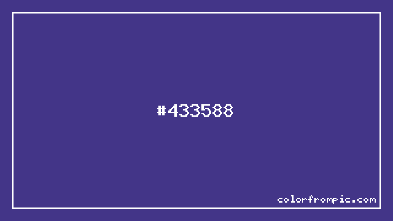 The hexadecimal color code #433588 represents a dark shade in the blue family. In the RGB color model, this color is composed of 67 red, 53 green, and 136 blue, which translates to approximately 26% red, 21% green, and 53% blue. This makes it a slightly desaturated color with cool undertones that can evoke different emotional responses depending on its application.