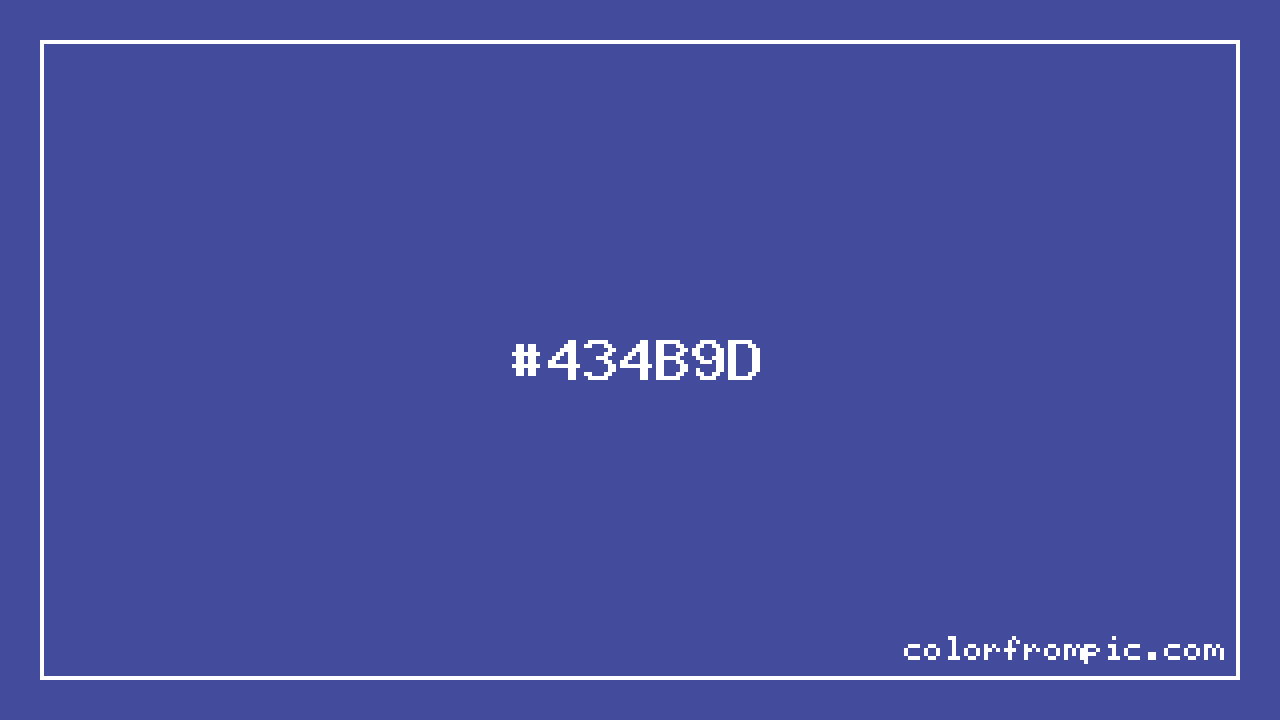 For print applications using the CMYK color model, #434B9D would be reproduced using 57% cyan, 52% magenta, 0% yellow, and 38% black. The closest web-safe color is #333399, which may be useful for ensuring compatibility across older displays and systems.