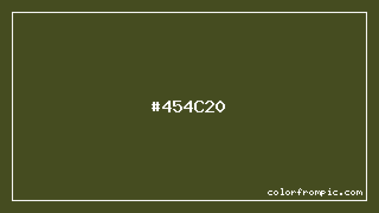 The hexadecimal color code #454C20 represents a dark shade in the yellow family. In the RGB color model, this color is composed of 69 red, 76 green, and 32 blue, which translates to approximately 27% red, 30% green, and 13% blue. This makes it a slightly desaturated color with cool undertones that can evoke different emotional responses depending on its application.