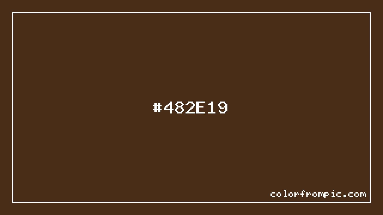 The hexadecimal color code #482E19 represents a very dark shade in the red family. In the RGB color model, this color is composed of 72 red, 46 green, and 25 blue, which translates to approximately 28% red, 18% green, and 10% blue. This makes it a slightly desaturated color with warm undertones that can evoke different emotional responses depending on its application.