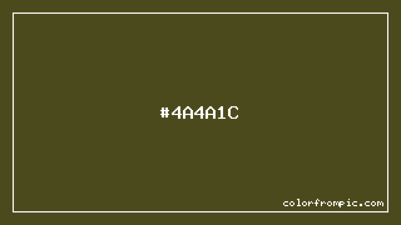 For print applications using the CMYK color model, #4A4A1C would be reproduced using 0% cyan, 0% magenta, 62% yellow, and 71% black. The closest web-safe color is #333333, which may be useful for ensuring compatibility across older displays and systems.