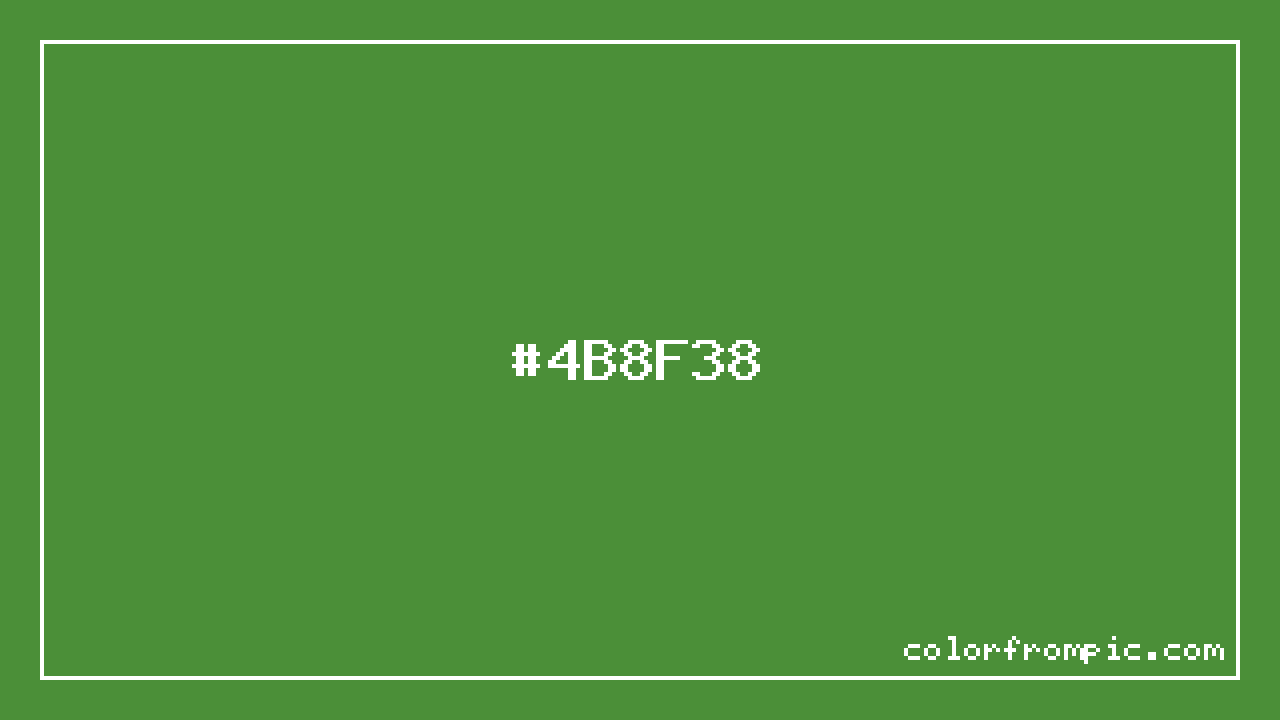 The hexadecimal color code #4B8F38 represents a dark shade in the green family. In the RGB color model, this color is composed of 75 red, 143 green, and 56 blue, which translates to approximately 29% red, 56% green, and 22% blue. This makes it a slightly desaturated color with cool undertones that can evoke different emotional responses depending on its application.