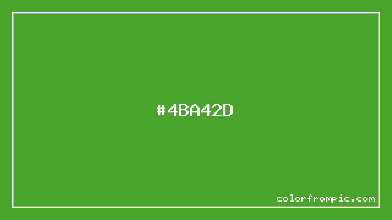 The HEX code for Cool Green is #4BA42D. In CSS you can use it directly as color: #4BA42D; or as a background: background-color: #4BA42D;. The three-character shorthand is not available for this color since it cannot be reduced without changing the value. Use the full six-character hex for accurate reproduction in any web or design project.