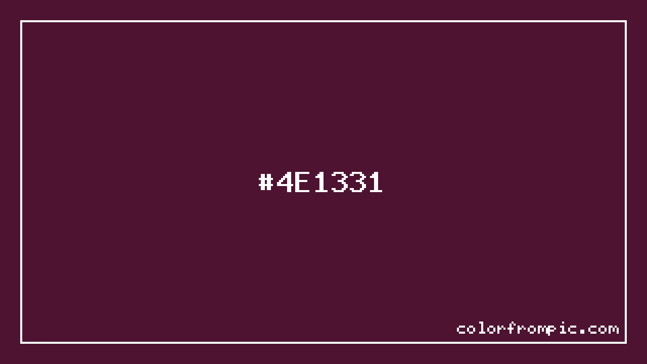 The HEX code for Deep Warm Magenta is #4E1331. In CSS you can use it directly as color: #4E1331; or as a background: background-color: #4E1331;. The three-character shorthand is not available for this color since it cannot be reduced without changing the value. Use the full six-character hex for accurate reproduction in any web or design project.