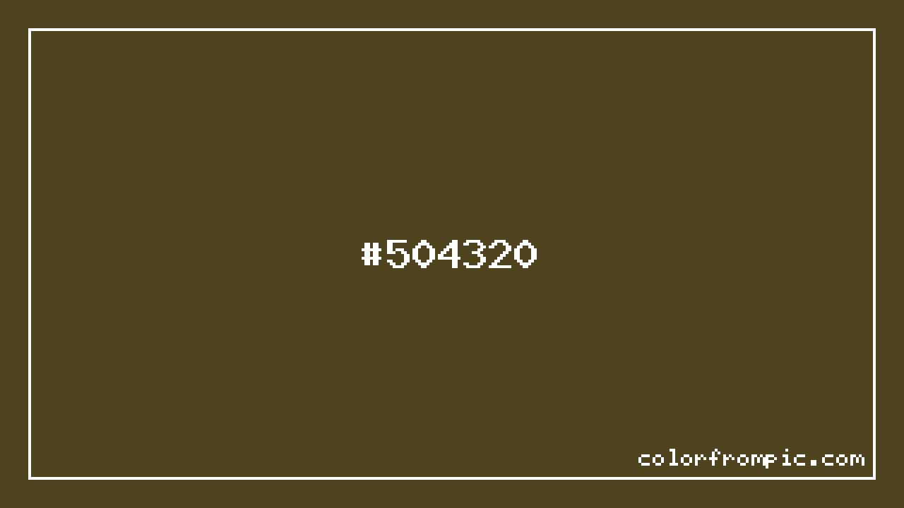 For print applications using the CMYK color model, #504320 would be reproduced using 0% cyan, 16% magenta, 60% yellow, and 69% black. The closest web-safe color is #663333, which may be useful for ensuring compatibility across older displays and systems.
