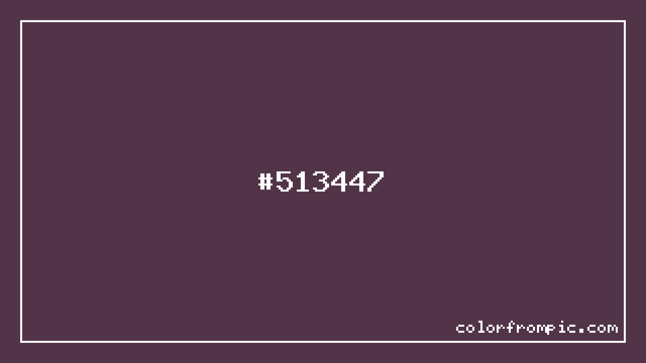 For print applications using the CMYK color model, #513447 would be reproduced using 0% cyan, 36% magenta, 12% yellow, and 68% black. The closest web-safe color is #663333, which may be useful for ensuring compatibility across older displays and systems.