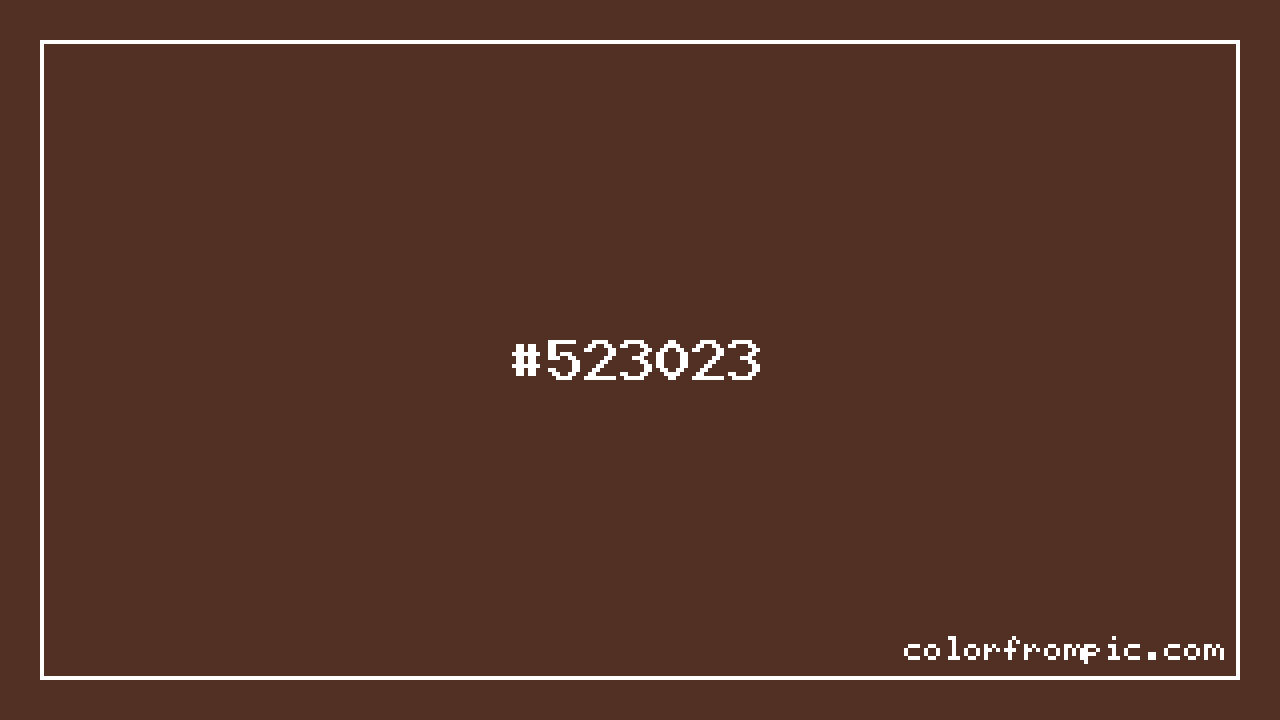 For print applications using the CMYK color model, #523023 would be reproduced using 0% cyan, 41% magenta, 57% yellow, and 68% black. The closest web-safe color is #663333, which may be useful for ensuring compatibility across older displays and systems.