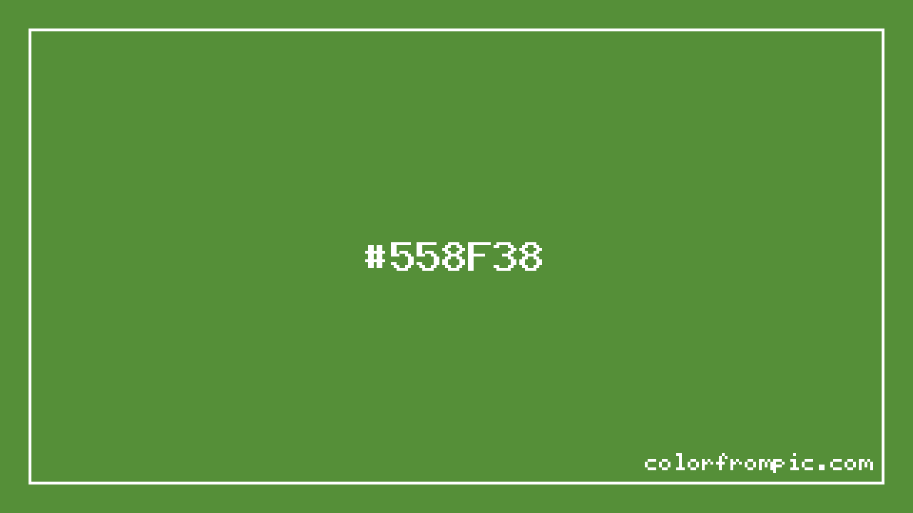 The hexadecimal color code #558F38 represents a dark shade in the green family. In the RGB color model, this color is composed of 85 red, 143 green, and 56 blue, which translates to approximately 33% red, 56% green, and 22% blue. This makes it a slightly desaturated color with cool undertones that can evoke different emotional responses depending on its application.