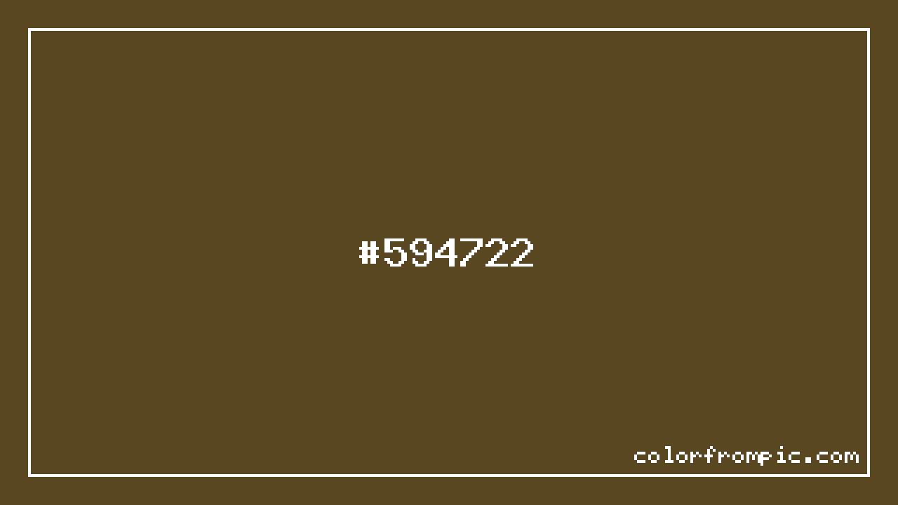 For print applications using the CMYK color model, #594722 would be reproduced using 0% cyan, 20% magenta, 62% yellow, and 65% black. The closest web-safe color is #663333, which may be useful for ensuring compatibility across older displays and systems.