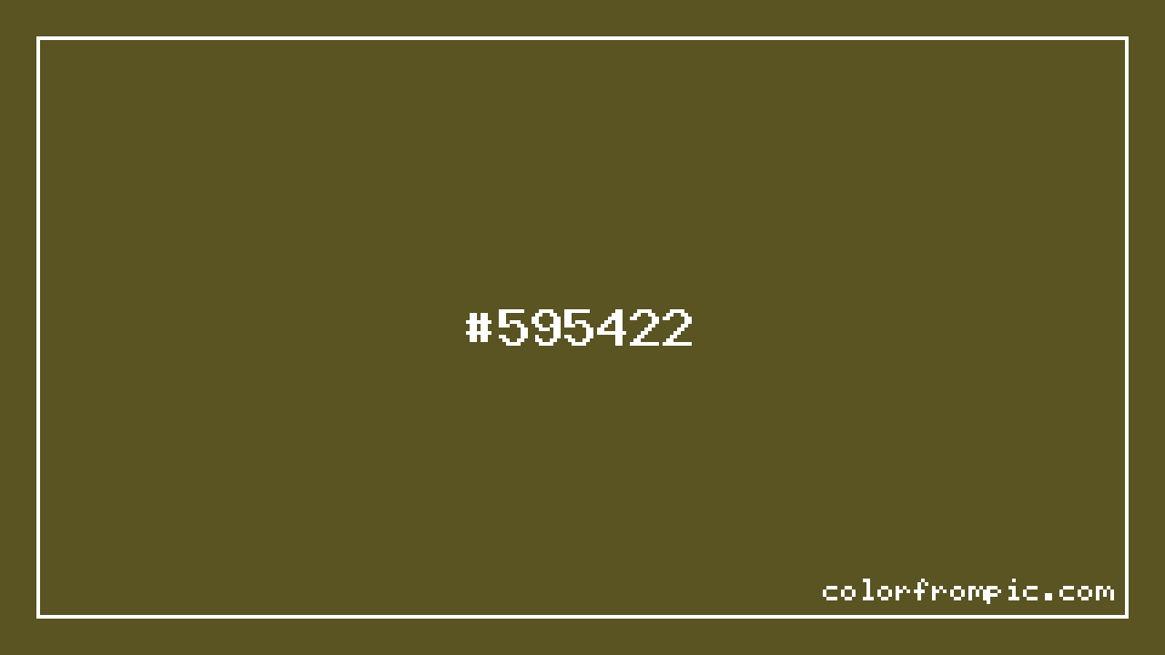 For print applications using the CMYK color model, #595422 would be reproduced using 0% cyan, 6% magenta, 62% yellow, and 65% black. The closest web-safe color is #666633, which may be useful for ensuring compatibility across older displays and systems.