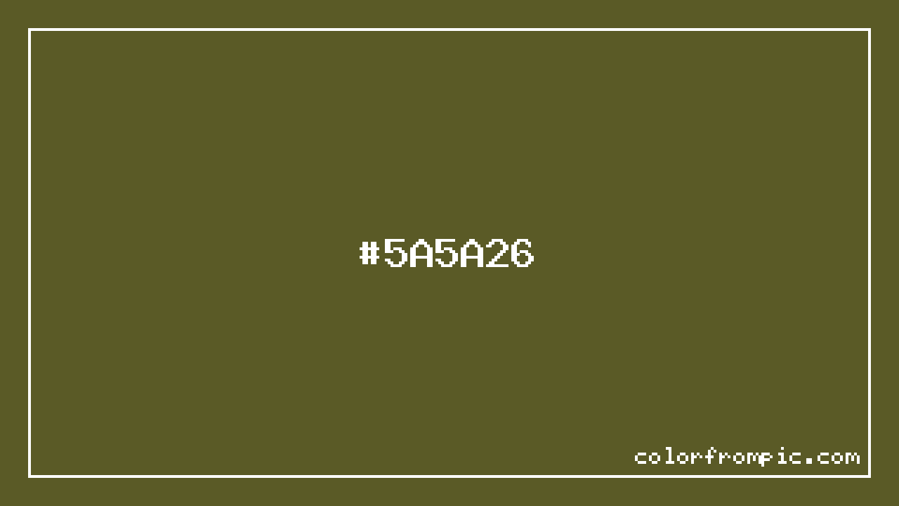 For print applications using the CMYK color model, #5A5A26 would be reproduced using 0% cyan, 0% magenta, 58% yellow, and 65% black. The closest web-safe color is #666633, which may be useful for ensuring compatibility across older displays and systems.