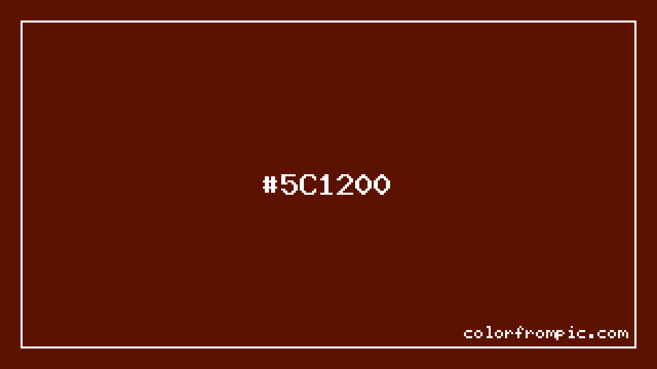 The hexadecimal color code #5C1200 represents a very dark shade in the red family. In the RGB color model, this color is composed of 92 red, 18 green, and 0 blue, which translates to approximately 36% red, 7% green, and 0% blue. This makes it a highly saturated color with warm undertones that can evoke different emotional responses depending on its application.