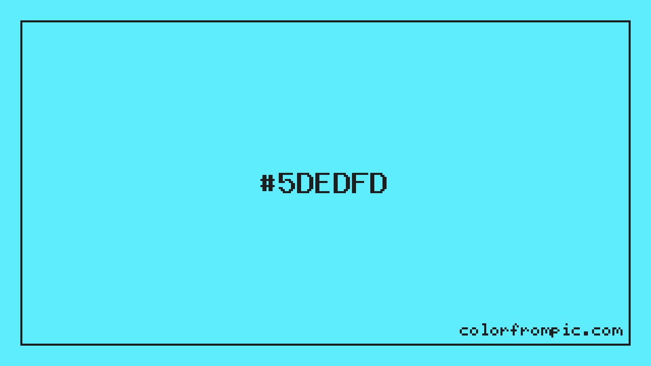 The HEX code for Soft Vivid Cyan is #5DEDFD. In CSS you can use it directly as color: #5DEDFD; or as a background: background-color: #5DEDFD;. The three-character shorthand is not available for this color since it cannot be reduced without changing the value. Use the full six-character hex for accurate reproduction in any web or design project.