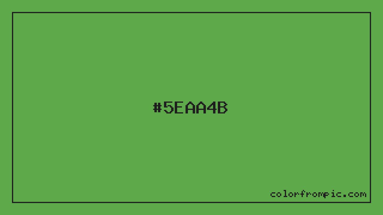 For print applications using the CMYK color model, #5EAA4B would be reproduced using 45% cyan, 0% magenta, 56% yellow, and 33% black. The closest web-safe color is #669933, which may be useful for ensuring compatibility across older displays and systems.