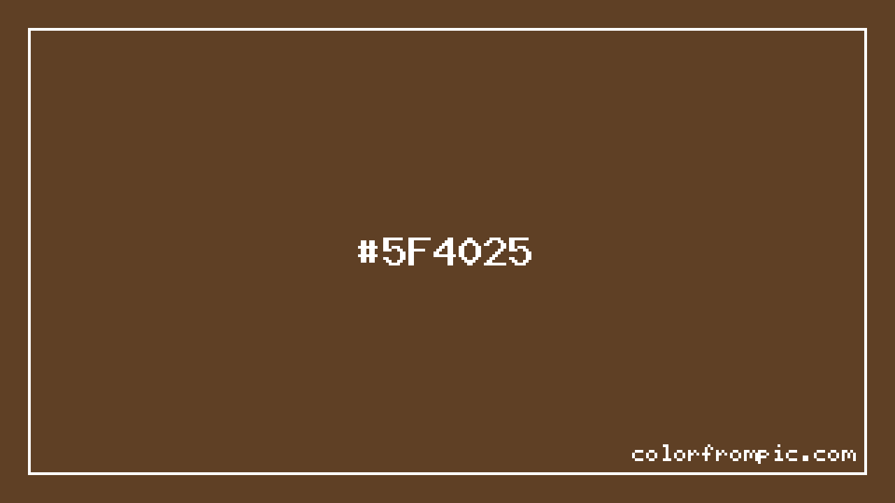 For print applications using the CMYK color model, #5F4025 would be reproduced using 0% cyan, 33% magenta, 61% yellow, and 63% black. The closest web-safe color is #663333, which may be useful for ensuring compatibility across older displays and systems.