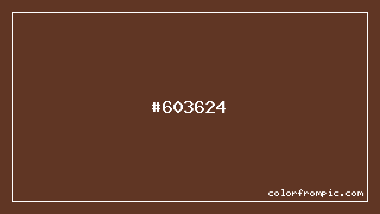 For print applications using the CMYK color model, #603624 would be reproduced using 0% cyan, 44% magenta, 63% yellow, and 62% black. The closest web-safe color is #663333, which may be useful for ensuring compatibility across older displays and systems.