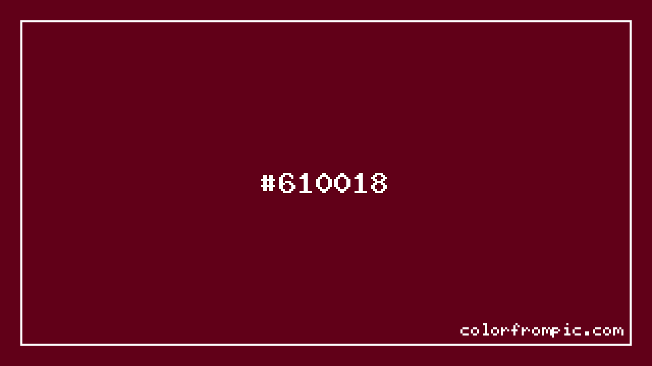 The hexadecimal color code #610018 represents a very dark shade in the red family. In the RGB color model, this color is composed of 97 red, 0 green, and 24 blue, which translates to approximately 38% red, 0% green, and 9% blue. This makes it a highly saturated color with warm undertones that can evoke different emotional responses depending on its application.