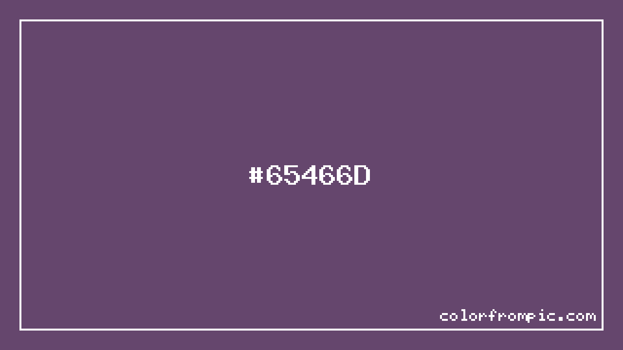 The HEX code for Dark Muted Purple is #65466D. In CSS you can use it directly as color: #65466D; or as a background: background-color: #65466D;. The three-character shorthand is not available for this color since it cannot be reduced without changing the value. Use the full six-character hex for accurate reproduction in any web or design project.