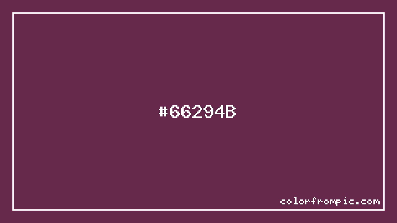 For print applications using the CMYK color model, #66294B would be reproduced using 0% cyan, 60% magenta, 26% yellow, and 60% black. The closest web-safe color is #663333, which may be useful for ensuring compatibility across older displays and systems.