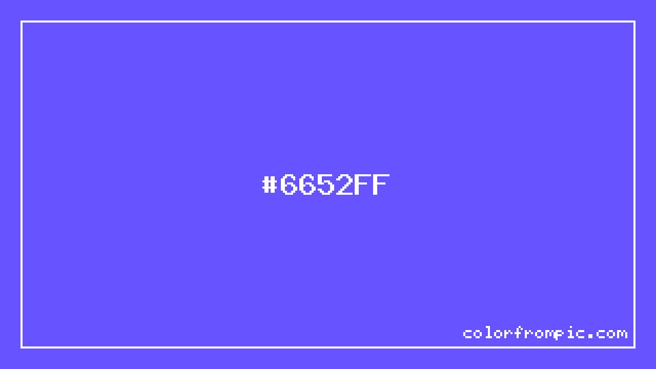 For print applications using the CMYK color model, #6652FF would be reproduced using 60% cyan, 68% magenta, 0% yellow, and 0% black. The closest web-safe color is #6666FF, which may be useful for ensuring compatibility across older displays and systems.