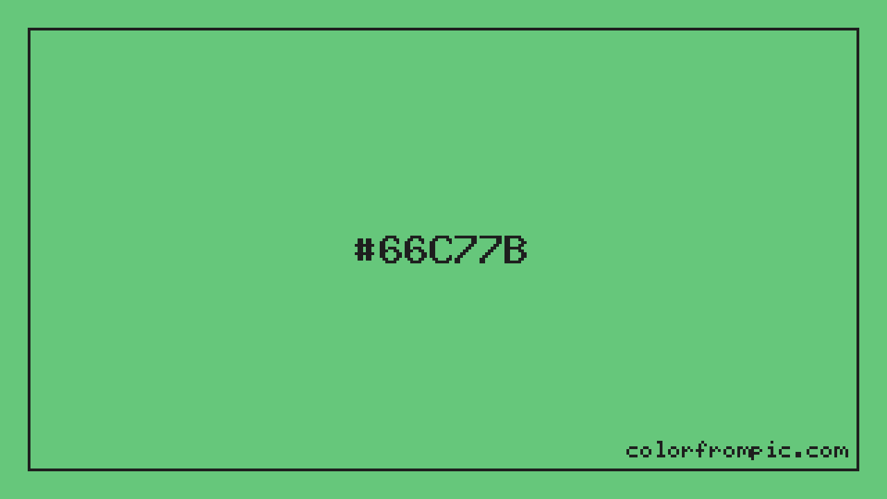 For print applications using the CMYK color model, #66C77B would be reproduced using 49% cyan, 0% magenta, 38% yellow, and 22% black. The closest web-safe color is #66CC66, which may be useful for ensuring compatibility across older displays and systems.