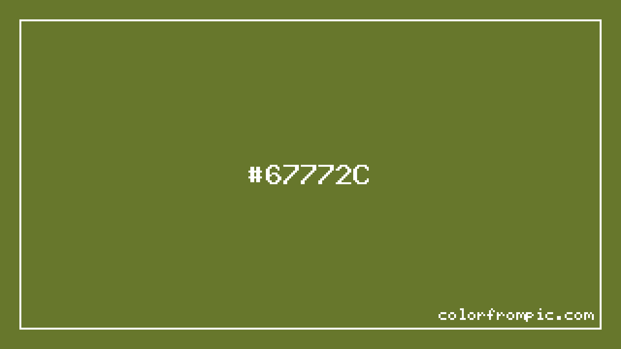This color works well in various design contexts. With its medium lightness, it's versatile enough for both foreground elements and subtle backgrounds. The moderate to low saturation gives this color a sophisticated, muted quality that works well in professional and minimalist designs. When pairing #67772C with other colors, consider its complementary color at hue 253° for maximum contrast, or use analogous colors within 30° of its hue for harmonious combinations. The decimal representation of this color is 6780716, which can be useful in certain programming contexts.