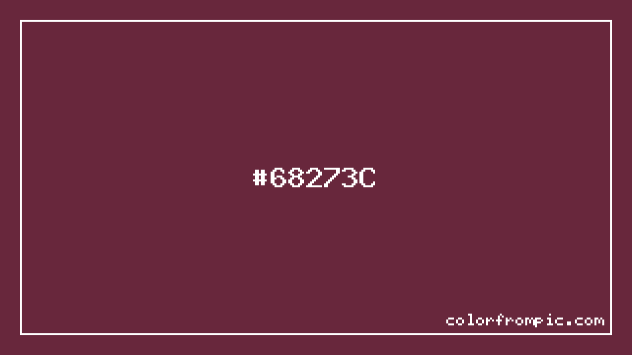 The hexadecimal color code #68273C represents a dark shade in the red family. In the RGB color model, this color is composed of 104 red, 39 green, and 60 blue, which translates to approximately 41% red, 15% green, and 24% blue. This makes it a slightly desaturated color with warm undertones that can evoke different emotional responses depending on its application.
