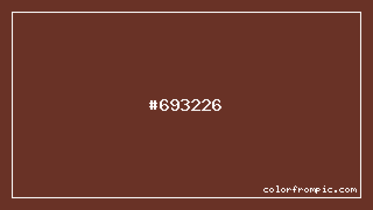 The hexadecimal color code #693226 represents a dark shade in the red family. In the RGB color model, this color is composed of 105 red, 50 green, and 38 blue, which translates to approximately 41% red, 20% green, and 15% blue. This makes it a slightly desaturated color with warm undertones that can evoke different emotional responses depending on its application.