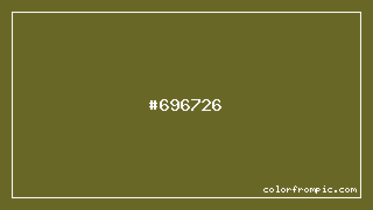 For print applications using the CMYK color model, #696726 would be reproduced using 0% cyan, 2% magenta, 64% yellow, and 59% black. The closest web-safe color is #666633, which may be useful for ensuring compatibility across older displays and systems.