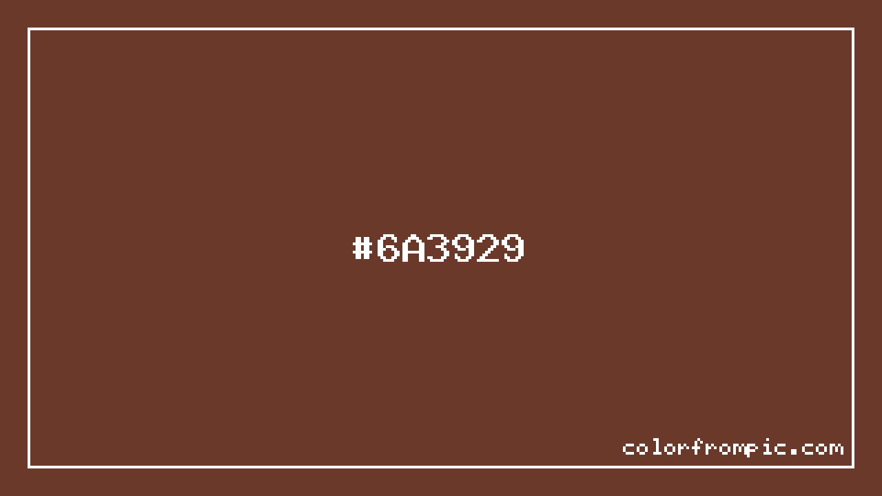 The hexadecimal color code #6A3929 represents a dark shade in the red family. In the RGB color model, this color is composed of 106 red, 57 green, and 41 blue, which translates to approximately 42% red, 22% green, and 16% blue. This makes it a slightly desaturated color with warm undertones that can evoke different emotional responses depending on its application.