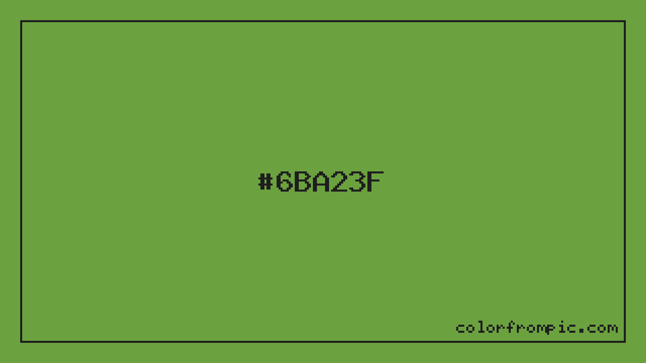 This color works well in various design contexts. With its medium lightness, it's versatile enough for both foreground elements and subtle backgrounds. The moderate to low saturation gives this color a sophisticated, muted quality that works well in professional and minimalist designs. When pairing #6BA23F with other colors, consider its complementary color at hue 273° for maximum contrast, or use analogous colors within 30° of its hue for harmonious combinations. The decimal representation of this color is 7053887, which can be useful in certain programming contexts.