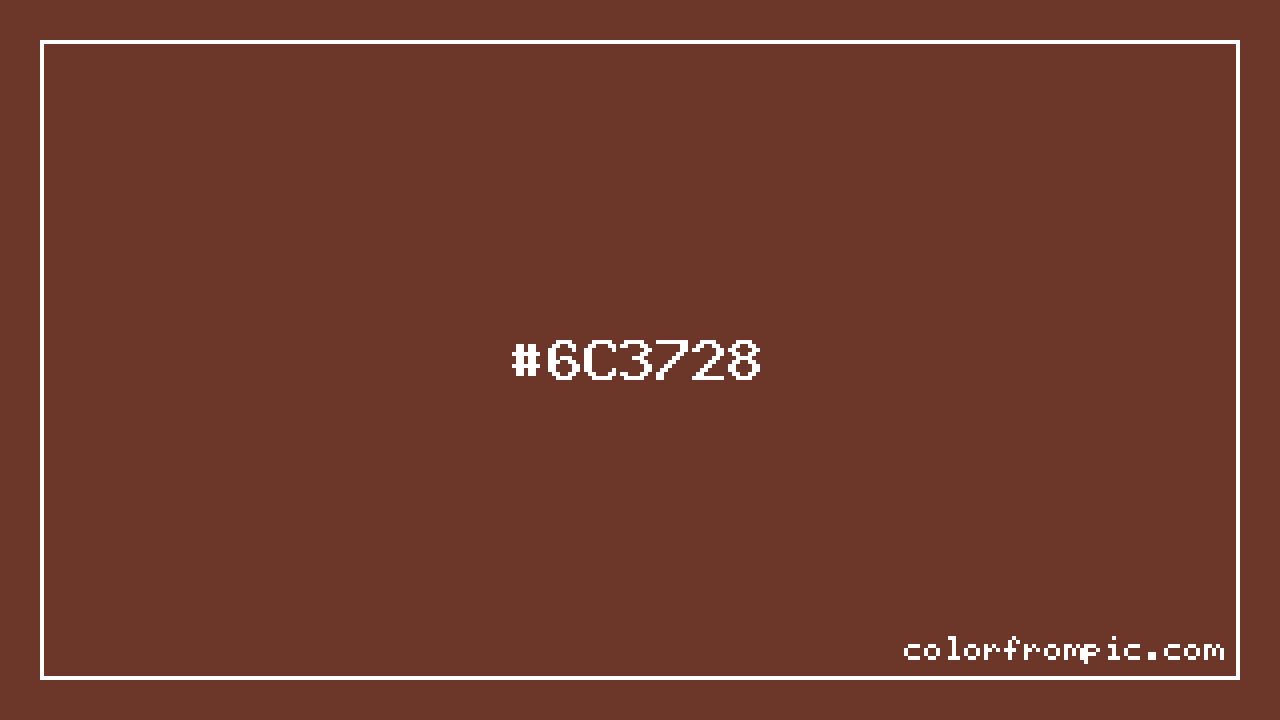 The hexadecimal color code #6C3728 represents a dark shade in the red family. In the RGB color model, this color is composed of 108 red, 55 green, and 40 blue, which translates to approximately 42% red, 22% green, and 16% blue. This makes it a slightly desaturated color with warm undertones that can evoke different emotional responses depending on its application.