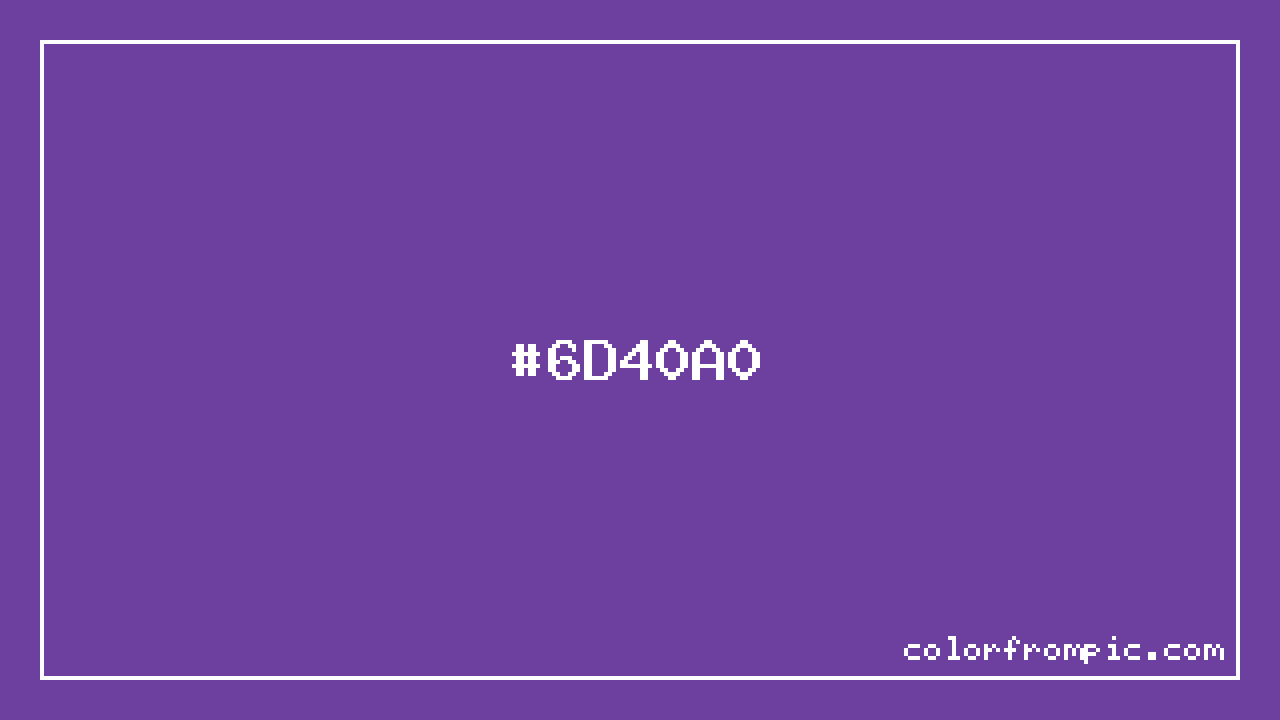 The HEX code for Violet is #6D40A0. In CSS you can use it directly as color: #6D40A0; or as a background: background-color: #6D40A0;. The three-character shorthand is not available for this color since it cannot be reduced without changing the value. Use the full six-character hex for accurate reproduction in any web or design project.