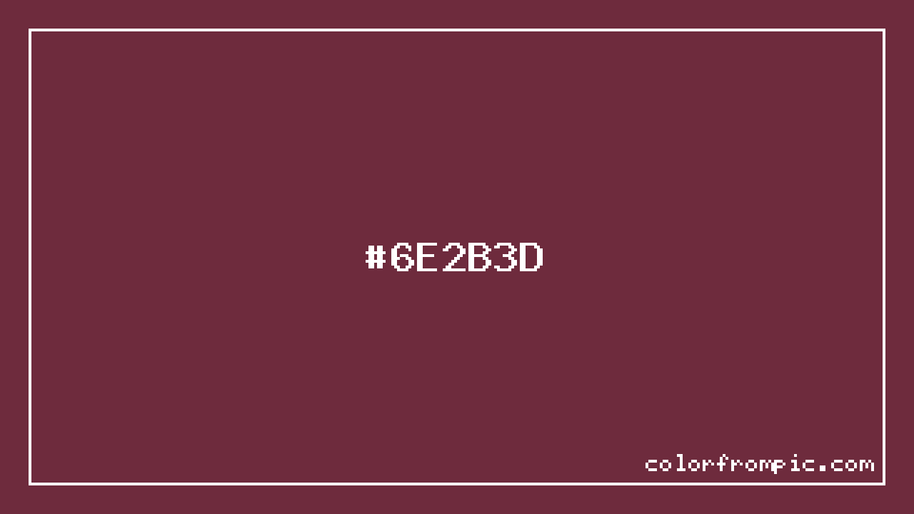 For print applications using the CMYK color model, #6E2B3D would be reproduced using 0% cyan, 61% magenta, 45% yellow, and 57% black. The closest web-safe color is #663333, which may be useful for ensuring compatibility across older displays and systems.