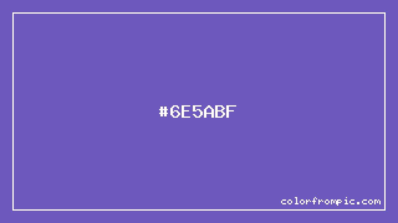For print applications using the CMYK color model, #6E5ABF would be reproduced using 42% cyan, 53% magenta, 0% yellow, and 25% black. The closest web-safe color is #6666CC, which may be useful for ensuring compatibility across older displays and systems.