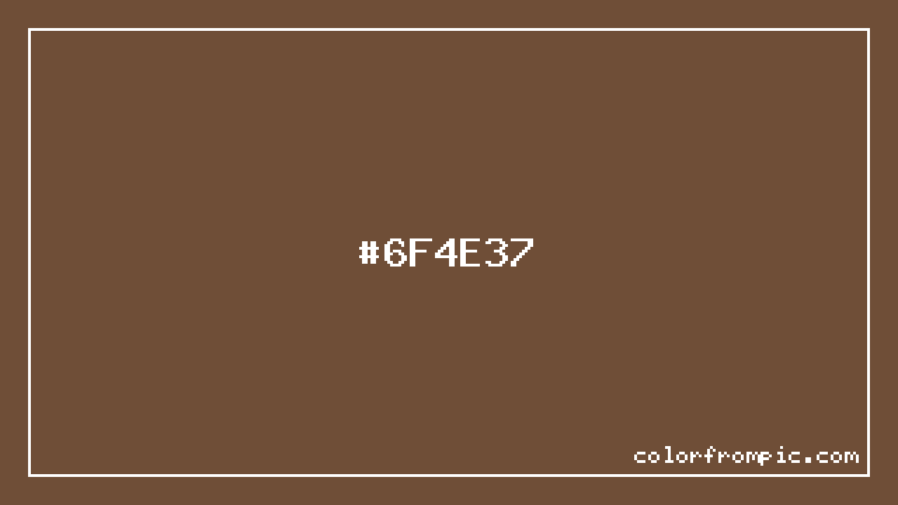 The hexadecimal color code #6F4E37 represents a dark shade in the red family. In the RGB color model, this color is composed of 111 red, 78 green, and 55 blue, which translates to approximately 44% red, 31% green, and 22% blue. This makes it a slightly desaturated color with warm undertones that can evoke different emotional responses depending on its application. When analyzed in the HSL (Hue, Saturation, Lightness) color space, #6F4E37 has a hue of 25 degrees, a saturation level of 34%, and a lightness value of 33%. The hue angle of places this color firmly in the red spectrum. In the HSV/HSB color model, this translates to a hue of , saturation of 50%, and brightness/value of 44%. For print applications using the CMYK color model, #6F4E37 would be reproduced using 0% cyan, 30% magenta, 50% yellow, and 56% black. The closest web-safe color is #666633, which may be useful for ensuring compatibility across older displays and systems. This color works well in various design contexts. With its medium lightness, it's versatile enough for both foreground elements and subtle backgrounds. The moderate to low saturation gives this color a sophisticated, muted quality that works well in professional and minimalist designs. When pairing #6F4E37 with other colors, consider its complementary color at hue 205° for maximum contrast, or use analogous colors within 30° of its hue for harmonious combinations. The decimal representation of this color is 7294519, which can be useful in certain programming contexts.
