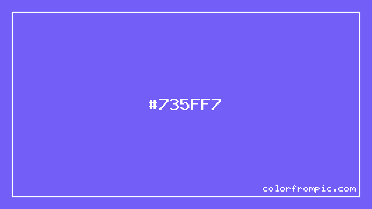 For print applications using the CMYK color model, #735FF7 would be reproduced using 53% cyan, 62% magenta, 0% yellow, and 3% black. The closest web-safe color is #6666FF, which may be useful for ensuring compatibility across older displays and systems.