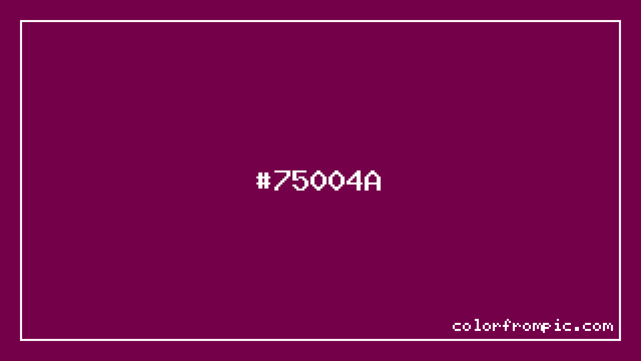 For print applications using the CMYK color model, #75004A would be reproduced using 0% cyan, 100% magenta, 37% yellow, and 54% black. The closest web-safe color is #660033, which may be useful for ensuring compatibility across older displays and systems.