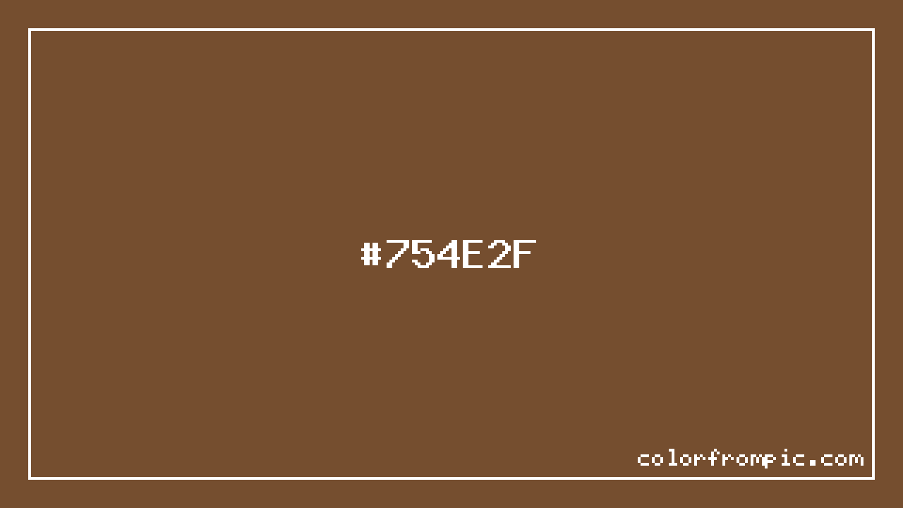 For print applications using the CMYK color model, #754E2F would be reproduced using 0% cyan, 33% magenta, 60% yellow, and 54% black. The closest web-safe color is #666633, which may be useful for ensuring compatibility across older displays and systems.