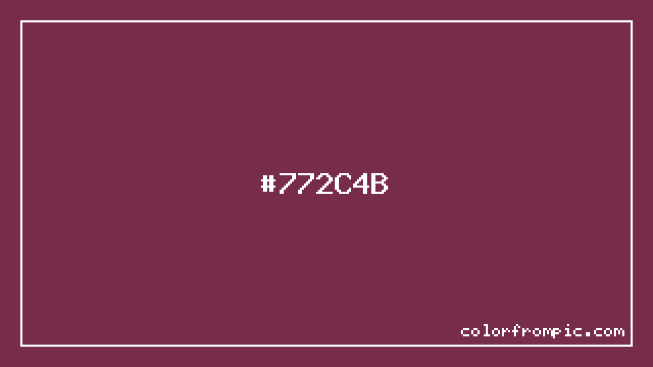 For print applications using the CMYK color model, #772C4B would be reproduced using 0% cyan, 63% magenta, 37% yellow, and 53% black. The closest web-safe color is #663333, which may be useful for ensuring compatibility across older displays and systems.