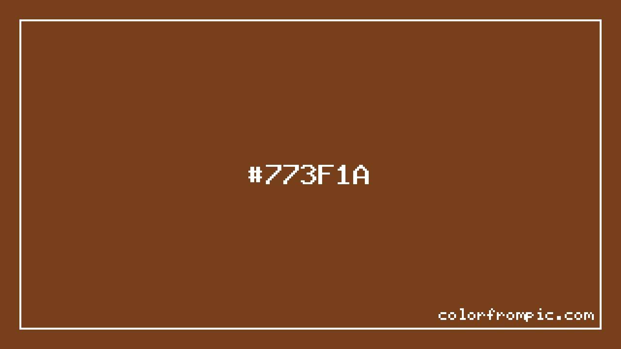The hexadecimal color code #773F1A represents a dark shade in the red family. In the RGB color model, this color is composed of 119 red, 63 green, and 26 blue, which translates to approximately 47% red, 25% green, and 10% blue. This makes it a moderately saturated color with warm undertones that can evoke different emotional responses depending on its application. When analyzed in the HSL (Hue, Saturation, Lightness) color space, #773F1A has a hue of 24 degrees, a saturation level of 64%, and a lightness value of 28%. The hue angle of places this color firmly in the red spectrum. In the HSV/HSB color model, this translates to a hue of , saturation of 78%, and brightness/value of 47%. For print applications using the CMYK color model, #773F1A would be reproduced using 0% cyan, 47% magenta, 78% yellow, and 53% black. The closest web-safe color is #663333, which may be useful for ensuring compatibility across older displays and systems. This color works well in various design contexts. As a darker shade, it works well for text, headers, and creating visual weight in compositions. The high saturation makes this color vibrant and attention-grabbing, ideal for call-to-action buttons, highlights, and accent elements. When pairing #773F1A with other colors, consider its complementary color at hue 204° for maximum contrast, or use analogous colors within 30° of its hue for harmonious combinations. The decimal representation of this color is 7814938, which can be useful in certain programming contexts.