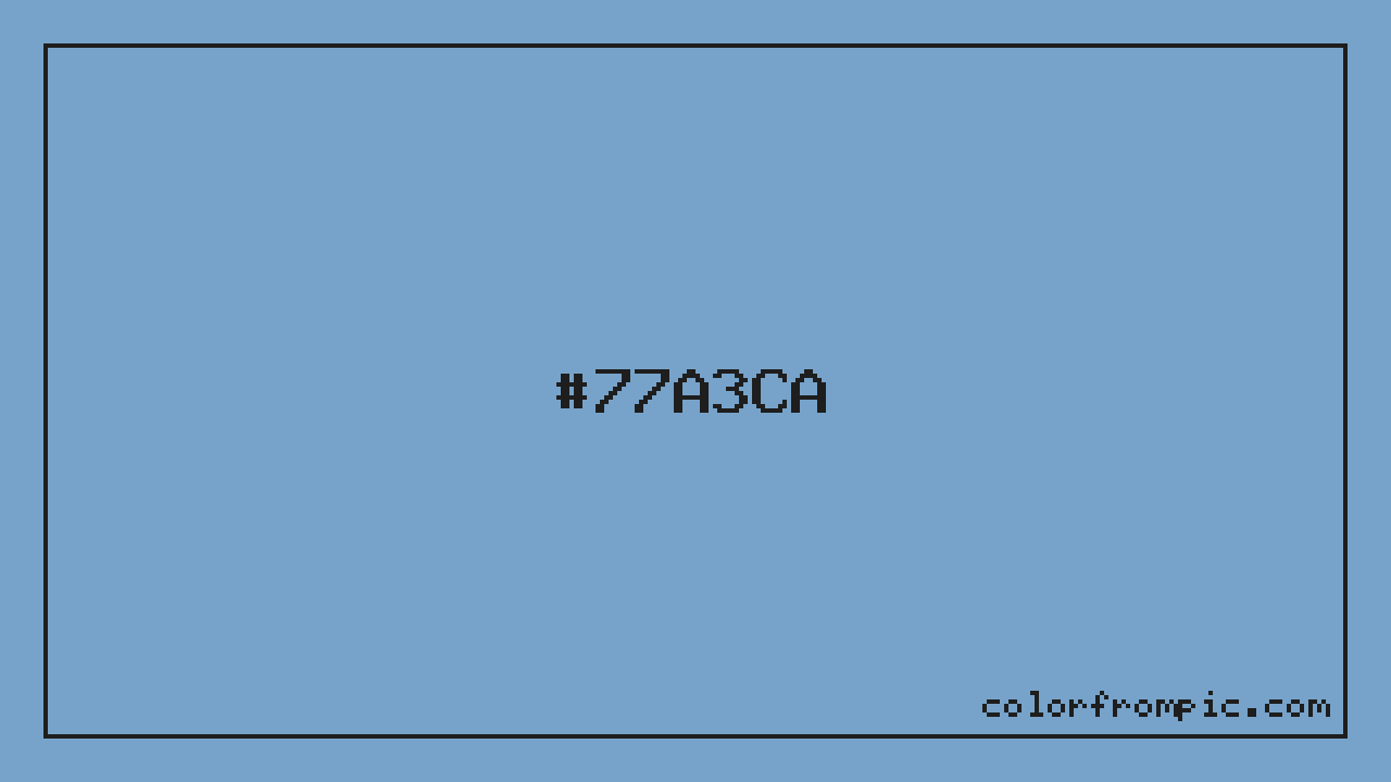 For print applications using the CMYK color model, #77A3CA would be reproduced using 41% cyan, 19% magenta, 0% yellow, and 21% black. The closest web-safe color is #6699CC, which may be useful for ensuring compatibility across older displays and systems.