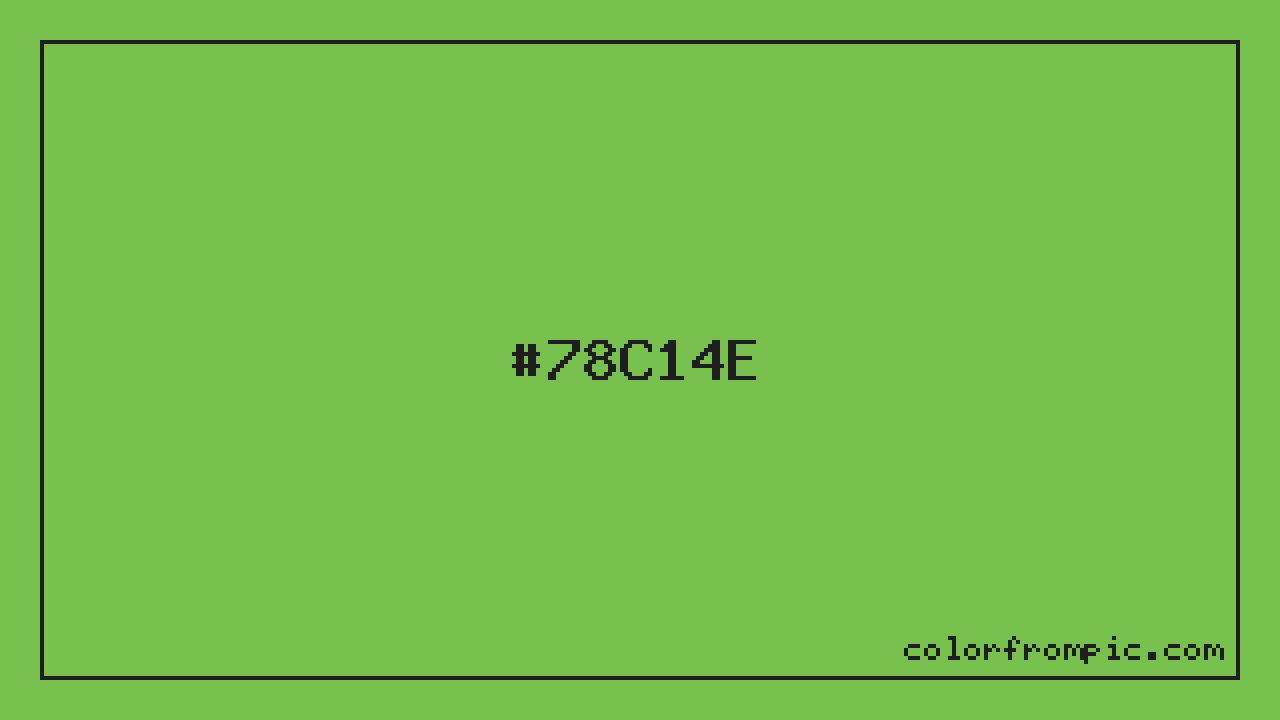 The hexadecimal color code #78C14E represents a medium shade in the green family. In the RGB color model, this color is composed of 120 red, 193 green, and 78 blue, which translates to approximately 47% red, 76% green, and 31% blue. This makes it a slightly desaturated color with cool undertones that can evoke different emotional responses depending on its application.